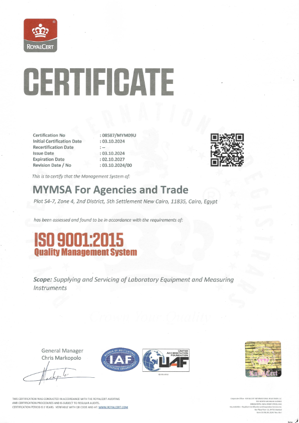 Since 1983, MYMSA is representing the best manufacturers in the field of laboratory, testing, calibration and measurement equipment exclusively in Egypt and several other countries in Africa and Middle East. We deliver a complete service package including: Consultancy, supply, training, calibration and after sales services. MYMSA is ISO 9001-2015 & ISO 17025-2017 certified